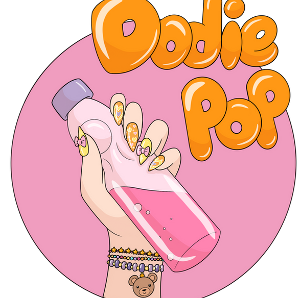 For this commission, I worked closely with the client to get the logo exactly how she wanted it. These logos are used for advertising for events, business cards, and even graphics behind her while she performs. Inspired by Kawaii aesthetics and rave culture. Her name, Dodie Pop, sounds like soda pop, so we were inspired to make the logo include a cute soda pop. And I carried this motif in the text and earrings, making them seem though and filled with soda pop.